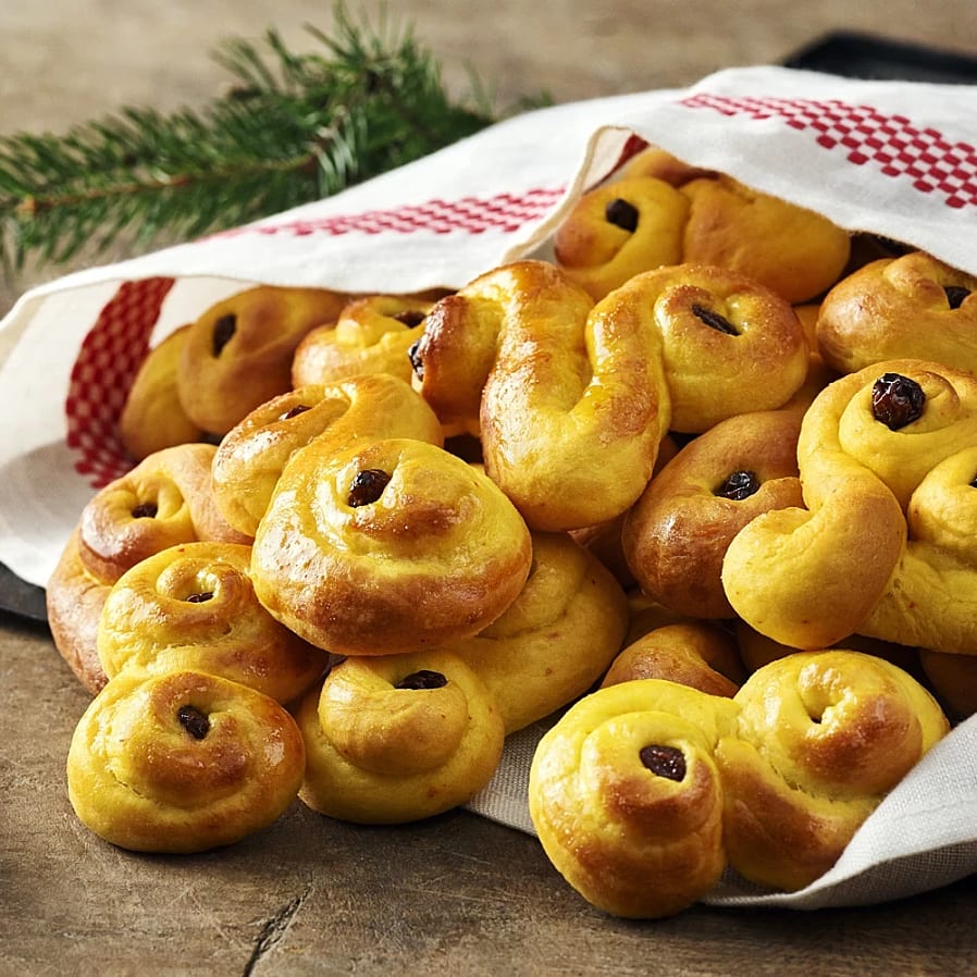 Listopad to też czas, gdy na szwedzkich półkach sklepowych pojawiają się szafranowe bułeczki – lussebullar. To ulubiony przysmak mojego męża Erica. Co ciekawe, w Argentynie, skąd pochodzi Eric, szafran jest popularny, ale używa się go głównie do barwienia paelli. Sama nigdy wcześniej nie używałam tej przyprawy, aż do czasu przeprowadzki do Szwecji. Teraz lussebullar są obowiązkowym elementem naszej domowej tradycji, choć tradycjonaliści twierdzą, że powinno się je jeść dopiero 13 grudnia, w dzień św. Łucji. U nas jednak złamiemy tę zasadę – Eric już nie może się ich doczekać!
